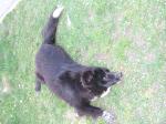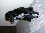 Ovo je mačak Garfield koji je više bratov lljubimac nego moj jer ja preferiram pse. On se odlično prilagodio na suživot sa psima. Obično primjeni strategiju bijega. Ima pet godina. Ova je slika još iz dana kad je imao vitku liniju jer otkada smo ga kastrirali prilično se zaokružio.