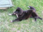 Ovo je naš Don, nažalost pokojni. Prije tri tjedna ga je udario auto. Bio je samo pet mjeseci kod nas a već nas je totalno osvojio, pogotovo moju bebačicu koja je konačno dobila kompu za igru jer se s ova dva gore baš i ne može ravnopravno igrati. Problem je bio u tome što se susjedova kuja tjerala, a on je preskakao sve moguće ograde. Cijeli dan smo ga držali zatvorenog i mislili ga otići kastrirati u ponedjeljak (jer bila je subota), i pustili smo ga van tek kad smo išli spavati što je očito bila kobna greška. Preskočio je opet ogradu i muvao se po ulici s još desetak pasa i tom kujom i baš je njega udario auto.