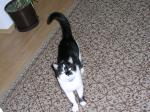 Ovo je mačak Garfield koji je više bratov lljubimac nego moj jer ja preferiram pse. On se odlično prilagodio na suživot sa psima. Obično primjeni strategiju bijega. Ima pet godina. Ova je slika još iz dana kad je imao vitku liniju jer otkada smo ga kastrirali prilično se zaokružio.