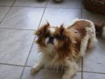 Fenomenalan je, kao sto vidis najveca specijalnos mu je sjedit u krilu. Hahaha igra se s loptom,pojeo mi slape cjele . zna da ide na wc na travu al ceka da mu kazes idemo . kad mu pokazes vodilicu stane pred vrata kuce. Izgeda da je bio maza necija. Pozdrav p.s dok ti pisem ovo spava mi u krilu i hrce ko top bas ono hrce ko moj tata hahaha