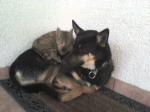 moj mali Kikić je zaključila da joj je postalo hladno za njene nožice pa se mala snašla i spava po cilu noć na Flori, valjda se boji da se ne razboli , a moj Florić to sve "majčinski" podnosi ( naravno da je i salama u pitanju).