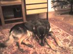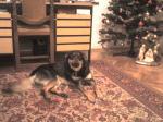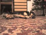 moja Flora se već oko 20h sakrila u dnu svoje kućice tako da me bila prepala da je možda pobjegla (onako crna uopće se ne vidi po mraku) pa smo odlučili pustiti ju u dnevni boravak a to njoj uopće nije teško palo Onda je dama prvo ležala na tepihu mašući repom sve u šesnaest, ko njoj je super a mali Kikić je vani,da bi se to "nadobudno optimistično" raspoloženje polako smirivalo, i u ponoć je završila ko velika kuglica sklupčana na kauču s facom "češkaj me i ni pod razno me ne ostavljaj samu"!!!! kasnije se nije dala izbaciti vani, pa smo ju uspjeli na jedvite jade nagovoriti da iziđe. onda je opet "zumnula" u kućicu a Kikici uopće nije bilo jasno šta se događa (petarde pa što? neće ti ništa! ajde izađi pa ćemo se igrati! ništa nije pomoglo ) tek je oko 3 ujutro prevladala glad pa je nabrzinu pojela sve što je bilo u zdjeli (i zarežala na Kiku kad je ova gurnula glavicu u njezinu zdjelu nadajući se da će i ona dobiti nešto, iako je svoje uredno pojela u 7 i po navečer) i vratila se u kućicu na spavanac do jutra . i to je bio prvi doček Nove godine mog "hrabrog i vrijednog pomoćnika" Djeda Božičnjaka