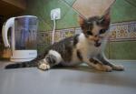 evo, antonija (toni) me obavijestila o ovom topicu jer je hektor kod mene zivio koja tri tjedna, pa mozda da napisem svoje iskustvo s njim. od prvog dana otkako je dosao hektor je bio jako bolezljiv, vjerojatno najbolezljivija maca koja je kroz moj stan prosla. otkad je dosao, cijelo je vrijeme bio u kupaoni, jer je sa svim tim bolestinama morao biti strogo odvojen od moje 3 mace. i moram ti reci da mislim da se nijednom nije pokakao nigdje drugdje osim u svoj wc (osim kad je, jadan, onako teturajuci, znao ugaziti u svoje govno, pa sam ga prala svako malo). ne razumijem u cemu je stvar, puno sam ga se puta dosad sjetila i pitala se kako je, i nadala da je, dosad, vec sigurno ozdravio, barem koliko je moguce u njegovom slucaju. bila sam s njim na veterini puno puta, i moram priznati da ni ja nisam bila zadovoljna tretmanom i terapijama - kad je veterinar na internoj vidio usi pune sugaraca (cak je i meni bilo jasno o cemu se radi) i kad sam ga pitala kako to tretirati, rekao je, doslovno, 'ma nije to nista posebno, mozete mu malo ispirati usi maslinovim uljem.' probala sam, makar sam znala da nece pomoci, i onda ubrzo otisla na parazitologiju, gdje su ga testirali na, kako su rekli, sve moguce parazite (donijela sam uzorak stolice) i rekli da se tri tjedna moraju kapati one kapi koje su, na kraju, zavrsile kod tebe, gizmo, zajedno s hektorom. rekli su mi da se nakon terapije mora samo doci na kontrolu, ali da bi to trebalo biti to. sto se njegovog teturanja tice, rekli su mi da je to urodjena neuroloska mana kojoj nema puno pomoci i ne moze se lijeciti, ali da mu se hod tijekom vremena moze popraviti i da ga to ne boli. i to je bila neka utjeha. eto, nazalost ti ne mogu pomoci (vise od ovoga), samo se nadam da ce biti bolje. a evo i slikica dok je bio kod mene - sve su mutne, nazalost, jer ga se nikad nije dalo nagovoriti da mi pozira, toliko je uvijek divljao. divljak.