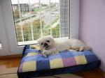 Divan prijateljski i pametni pesonja. Obozava skociti na stol i gledati kroz prozor. :) Problem je sto s poda skace na OTVORENE prozore i hoce hodati po vanjskom limu. A mi smo na trecem katu. Horor! Zato ih otvaramo samo na "ve". U autu je super pristojan. Isli smo na put. Sjedio je u krilu ili pod nogama, gledao van, spavao.
