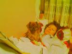 Inace, Medo ne voli slatko, nema te cokoladice ili keksa koji bi on pozelio pojesti. Medjutim, sinoc je ukrao piskotu i imao ju namjeru spremiti. Skrivao ju je i skrivao nekih sat vremena ali niti jedno mjesto nije bilo dovoljno dobro, stalno se morao vracati po piskotu i provjeravati je li jos na mjestu i na kraju ju je preselio tj. ugurao izmedju zida i madraca. (Ah, secernih mrvica posvuda...) Takodjer je zakljucio da sam ja zeljna te njegove piskote pa cim bih krenula put sobe, on bi me zurno preticao i jurio k piskoti. Time se bavio satima (opcenito je Medo stalno zaposlen) a kad je zaspao, cijelu je noc u snu lajao.