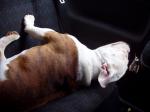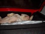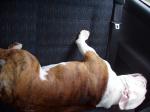Ovaj put Ron se nije bas iskazao u plivanju, ali zato spavanje u autu mu je specijalnost... obozava spavati na onoj polici kod straznjeg stakla...i naravno u mojem autu ta polica nije za njegovu kilazu i pala je dok je spavao, ali on se nije ni mrdnuo...nastavio je spavati izvrnut na ledjima u bunkeru...