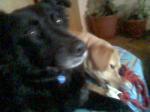 Uglavnom, ajme meni!! Ne znam kaj sad trebam raditi jer nisam se nikada s tim susrela. Figo (a to je njen novi 'brat') je muško, kastriran i baš ga briga zapravo, tako da to nije bed. Strah me da se ne počnu skupljat psi iz kvarta, a ja s njih dvoje baš nemam neku poziciju za obranu!