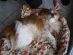 Pepa je sad super, odlično se oporavila, oko je ko novo, normalno vidi na njega, krvarenje na plućima je stalo, no još je na terapiji Konakionom jer čim smo stali, krvarenje se vratilo. Vesela je, lijepo jede i pije, straaašno je umiljata i dobra