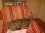 Nismo je stavili na dijetu,samo se puno šetamo,malo je već smršavila.Ne jede puno,na tanjuriću uvijek ima pseće kekse,ali rijetko pojede sve.Voli samo"Darling" od junetine,ostale zaobilazi dok ne ogladni pošteno,ali više ih ne kupujemo.Čemu je gnjaviti nečim ako to ne voli?Jede uvijek kad i mi,ali ne i sve što i mi.Dobije juhu,kuhano ili pečeno nemasno meso,palentu i jogurt,i naravno konzerve,a kad nanjuši čokoladu sva se raspameti,ali joj ne dajemo jer mislimo da nije zdrava za pse.Dobila je samo nekoliko kockica samo prvih dana kad smo joj se ulizivali. Sad je definitivno uhvatila ritam obitelji,potpuno je opuštena s nama,ali i dalje se boji odraslih ljudi u šetnji,naglih zvukova,jako se boji šuškanja najlonske vrećice. Jednom sam skinula jaknu i slučajno držala povrh nje,stisnula se,ukočila od straha,onda sam je uvjeravala da je to jakna i da nije opasna i da joj ništa neće biti ,nekoliko puta sam je svukla i obukla,i nakon puno maženja ponjušila je jaknu i smirila se.Sirotica je očito jako istraumatizirana. Hoće li ikada savladati strahove,što vi ostali mislite???