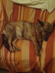 Nismo je stavili na dijetu,samo se puno šetamo,malo je već smršavila.Ne jede puno,na tanjuriću uvijek ima pseće kekse,ali rijetko pojede sve.Voli samo"Darling" od junetine,ostale zaobilazi dok ne ogladni pošteno,ali više ih ne kupujemo.Čemu je gnjaviti nečim ako to ne voli?Jede uvijek kad i mi,ali ne i sve što i mi.Dobije juhu,kuhano ili pečeno nemasno meso,palentu i jogurt,i naravno konzerve,a kad nanjuši čokoladu sva se raspameti,ali joj ne dajemo jer mislimo da nije zdrava za pse.Dobila je samo nekoliko kockica samo prvih dana kad smo joj se ulizivali. Sad je definitivno uhvatila ritam obitelji,potpuno je opuštena s nama,ali i dalje se boji odraslih ljudi u šetnji,naglih zvukova,jako se boji šuškanja najlonske vrećice. Jednom sam skinula jaknu i slučajno držala povrh nje,stisnula se,ukočila od straha,onda sam je uvjeravala da je to jakna i da nije opasna i da joj ništa neće biti ,nekoliko puta sam je svukla i obukla,i nakon puno maženja ponjušila je jaknu i smirila se.Sirotica je očito jako istraumatizirana. Hoće li ikada savladati strahove,što vi ostali mislite???