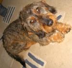 U 8 mjesecu prosle godine na potezu izmedju Pakraca i Lipika pronasli smo muzjaka cistokrvnog ostrodlakog jazavcara kojeg smo udomili da ga zalijeèimo i dohranimo te da ga nakon toga udomimo. Na sebi nije imao nikakve oznake ili ogrlicu, niti je bio cipiran. Doveli smo ga u Zagreb i ostao je kod nas "malo" dulje nego sto smo ocekivali.