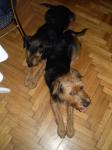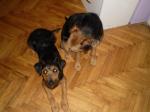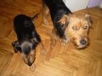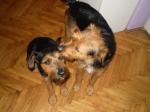 Ovakva je situacija: psi su trenutno kod mene, odnosno morala sam se privremeno preseliti da bi ih mogla smjestiti. Na sreću, stan od svekra i svkrve je trenutno prazan, a ja isto trenutno slobodna, pa sam mogla sa njima otići tamo, a moji psi su sa mojima doma. Tako možemo još dva tjedna, i u tom roku bi ih trebala udomiti. Molim sve da mi pomognu u tome (znam koliko ima pasa za udomiti, ali ipak molim). U samo jedan dan upoznala sam te pse u sasvim drugom svjetlu. MIslila sam da su dovoljni jedan drugome ali meni se čini da zapravo svaki od njih treba svog čovjeka. To kažem zato što se su već počeli boriti za moju naklonost. Strašno su željni pažnje i ljubavi. Ovaj malo veći samostalniji je i pravi mali terijer, loptica je zakon, vraća je direktno u ruku. Ovaj manji prava je lutkica, sve što mu treba je da se stisne uz tebe. Ako nema čovjeka, onda je potpuno ovisan o bratu. Na stan i mene privikli su se u jedan dan - nevjerovatno! Dobri su , mirno, samo spavaju. Ne treba im puno. Ali strašno žele biti uz mene - to mi je jedino problem po noći, oboje bi praktički na krevet, pogotovo manji, samo da su što bliže čovjeku. Sve obavljaju vani. Ma psi su super! Jedina stvar je što ih trebam naviknuti na lajnu, jer očito nikada nisu imali ni ogrlicu, uvijek su bili slobodni. Stavljam ove prve foke i vraćam se tamo, ostavila sam ih same - baš me zanima kako će se ponašati. Dakle, jedan je mirniji, voli se malo poigrati i puno maziti, drugi malo aktivniji (al ne puno, loptica je dovoljna ) i također puno maziti - a glumi nekog malog frajerčića .