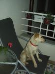 a sada sjedimo na balkonu i ona naravo na stolici koju je totalno prisvojila..za mene na toj stolici više nema mjesta ..i gleda me što radim...ali već joj se spava jer sam ju naravno oper izmorila na nasipu