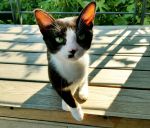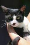 Prije par tjedana nam je na vrata došao mali gladni crno-bijeli mačak. Osvojio nas je istog trena. Kako već imamo 5 velikih ljubimaca, odlučili smo mu pronaći novi dom. Osvojio je on i naše mačke, odlično se s njima slaže, i strpljivo čeka vlastitu zdjelicu s hranom. Star je oko 4 mjeseca, dovoljno mali da je još zaigran i hrabar, a dovoljno veliki da obožava maženje. Očišćen je od nametnika i uvijek vrši nuždu gdje treba. Glasa se malim 'mrrrmm'. Voli papiriće i plišane životinje koje lovi po kući. Uljepša nam svaki dan.